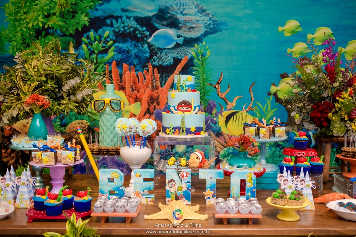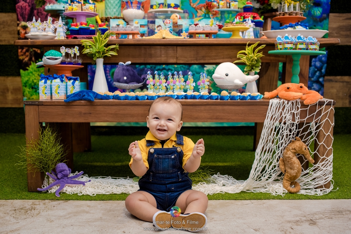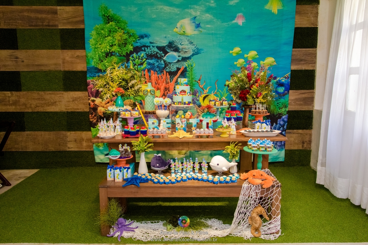 O tema da festa foi fundo do mar e aconteceu no Espaço Quebra Nozes - Casa de Festas Infantil e Eventos, em Copacabana!